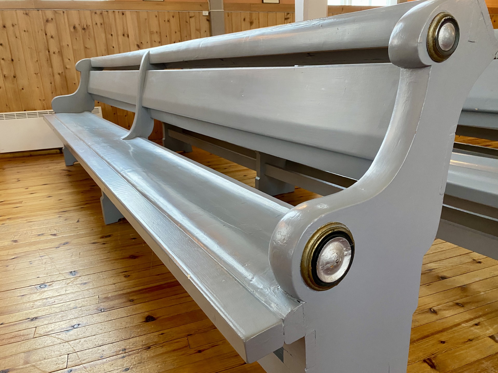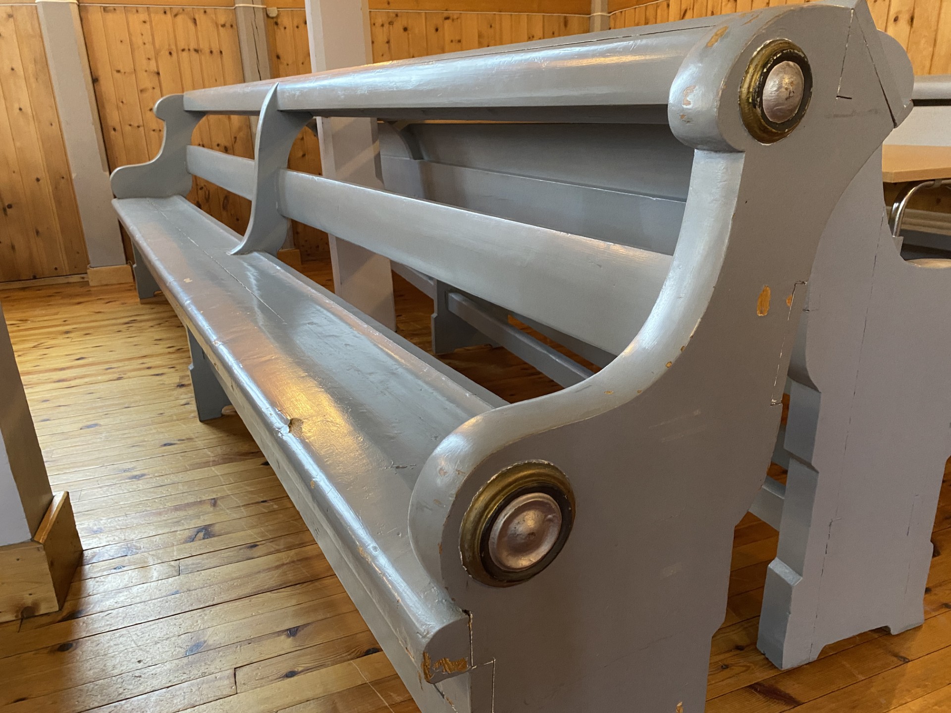 Oppgradert kirkebenk. Setet er forlenget og benkene har fått en solid og god korsryggstøtte.